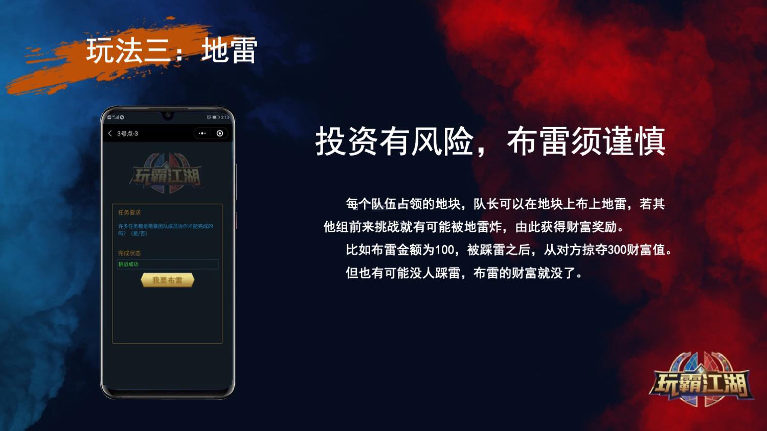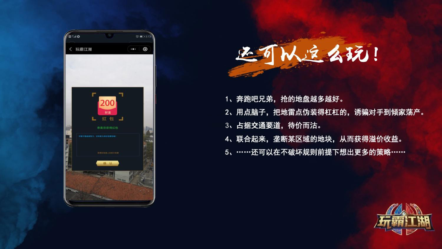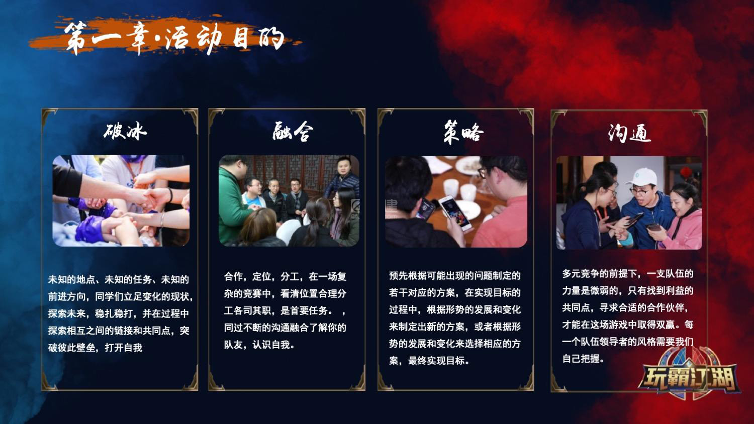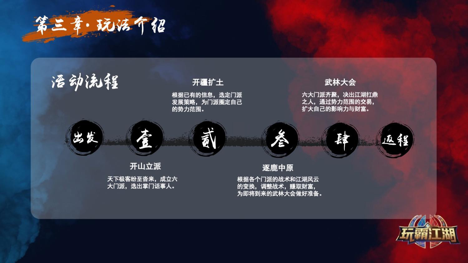 行程安排 09:00—09:30 开山立派 天下极客纷至沓来,成立六大门派,选出掌门话事人。 09:30—10:00 开疆扩土 根据已有的信息,选定门派发展策略,为门派圈定自己的势力范围。 10:00—11:30 逐鹿中原 根据各个门派的战术和江湖风云的变换,调整战术,赚取财富,为即将到来的武林大会做好准备 11:30—12:30 武林大会 六大门派齐聚,决出江湖扛鼎之人,通过势力范围的交易,扩大自己的影响力与财富。