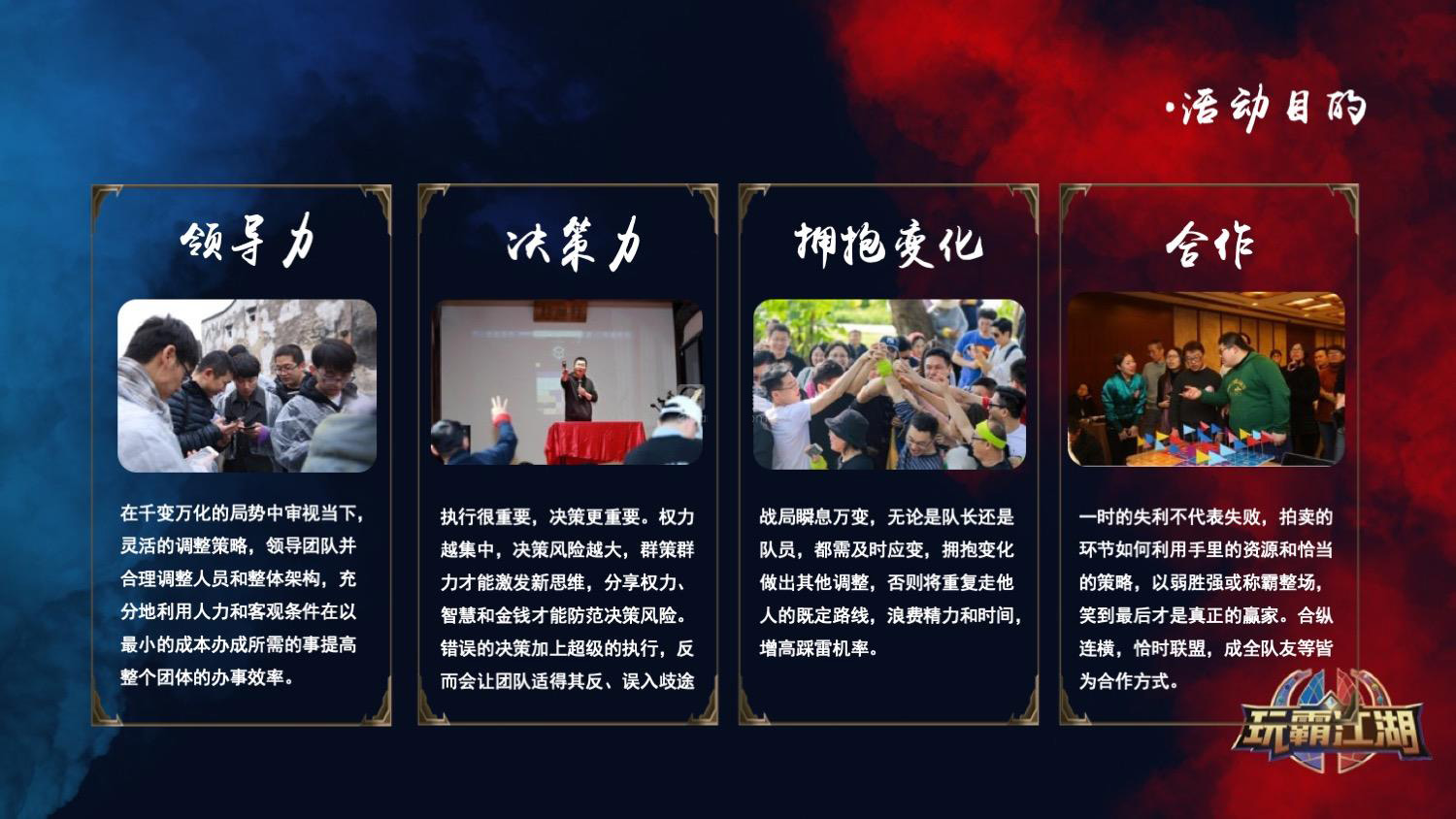 行程安排 09:00—09:30 开山立派 天下极客纷至沓来,成立六大门派,选出掌门话事人。 09:30—10:00 开疆扩土 根据已有的信息,选定门派发展策略,为门派圈定自己的势力范围。 10:00—11:30 逐鹿中原 根据各个门派的战术和江湖风云的变换,调整战术,赚取财富,为即将到来的武林大会做好准备 11:30—12:30 武林大会 六大门派齐聚,决出江湖扛鼎之人,通过势力范围的交易,扩大自己的影响力与财富。